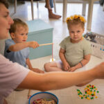 Activities: Singing, dancing, and playing musical instruments. Children also participate in fun movement activities like dancing, stretching, and rhythm-based games to develop body awareness.